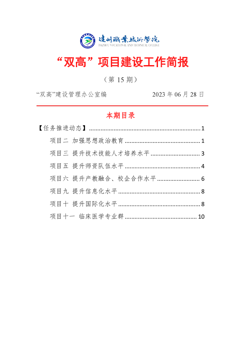 “双高”项目建设工作简报 (第十五期)