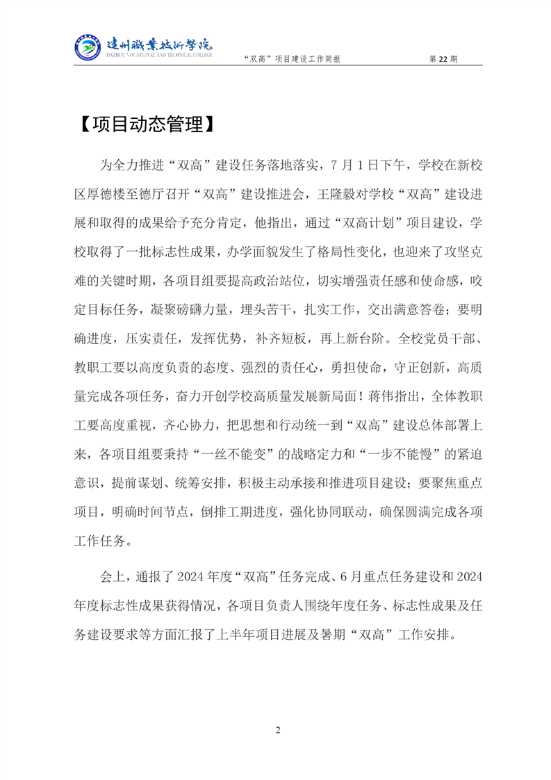 “双高”项目建设工作简报 (第二十二期)