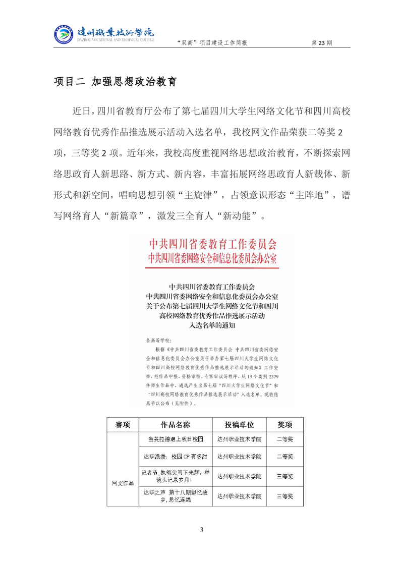 “双高”项目建设工作简报 (第二十三期)